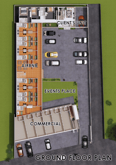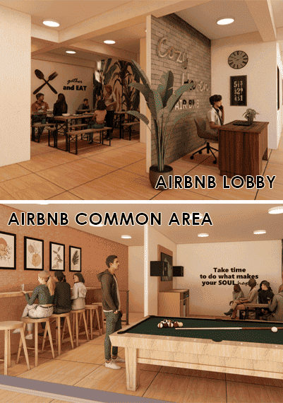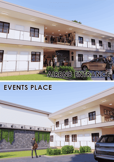 - Project Details: Commercial Building / Air B&B / Function Room / Events Place / Clients Unit This mixed-use project is a harmonious blend of commerce and hospitality. It integrates modern tropical design with earth tones, featuring shade of beige, brown and green, bringing sense of serenity, perfect for its site location.